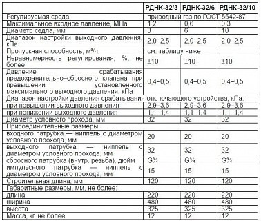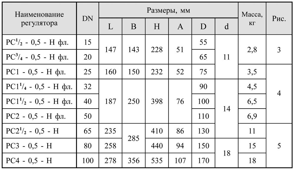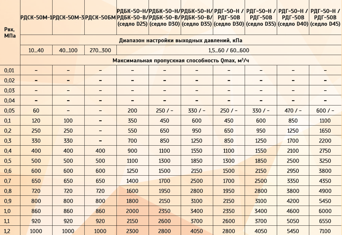 Таблица регуляторов давления