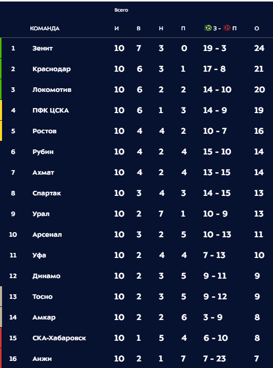Таблица рфпл 2019