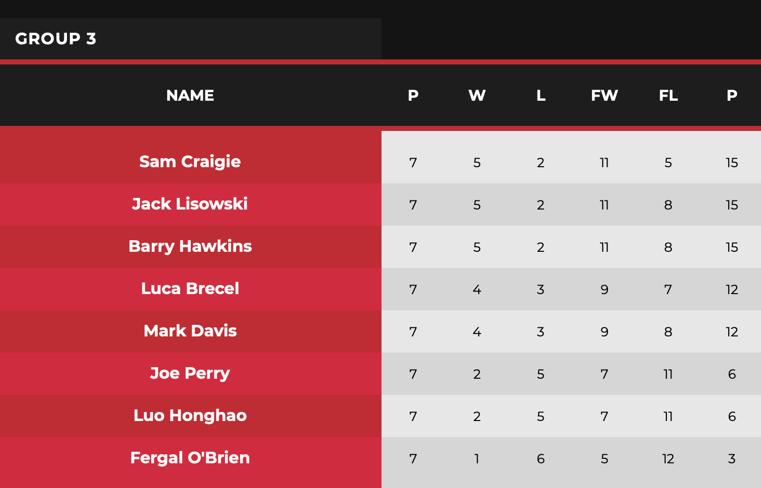 Таблица снукеристов