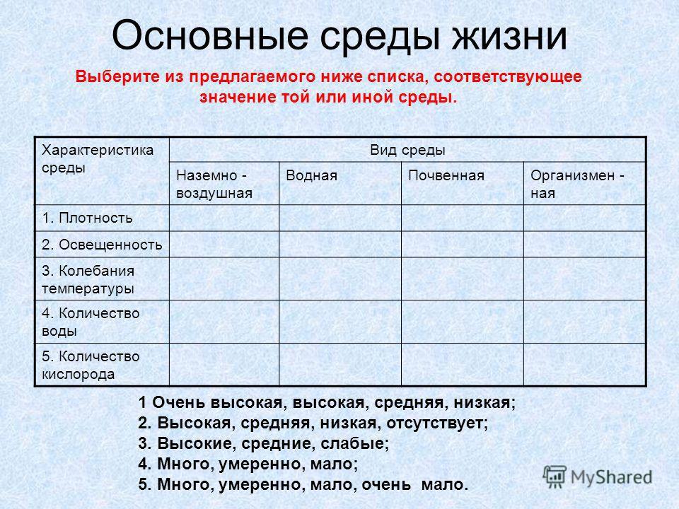 Таблица со средой обитания 105 фото