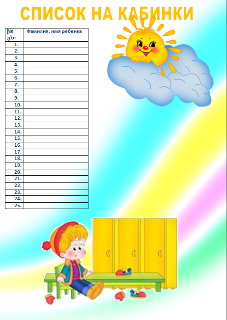 Таблица списков в детский сад