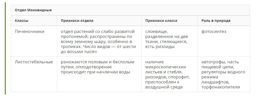 Таблица сравнения мхов