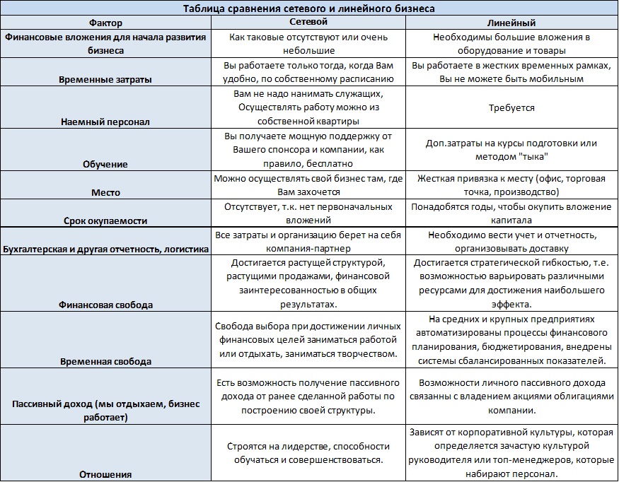 Таблица сравнения видов документов