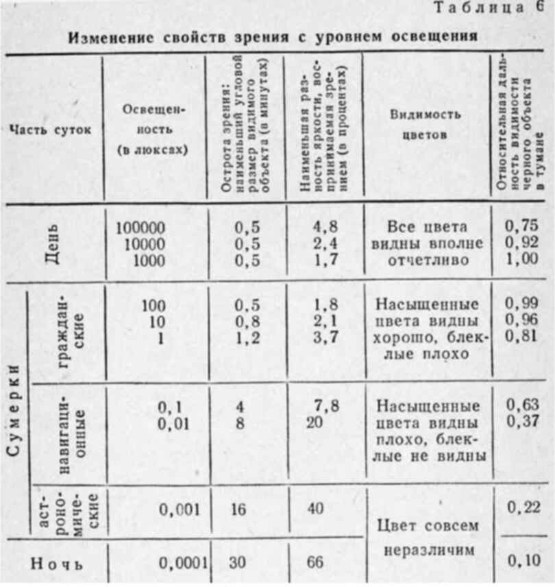 Таблица света глаз