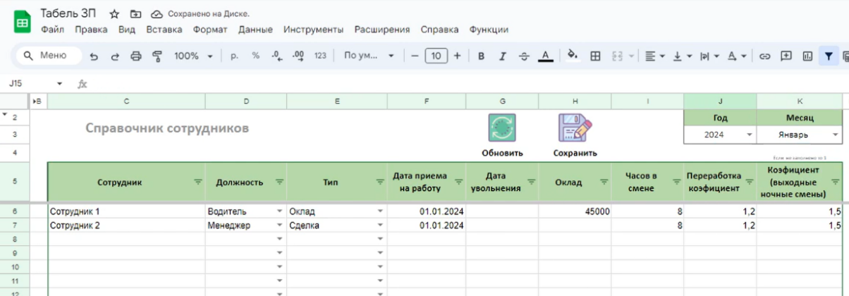 Таблица учета переработок