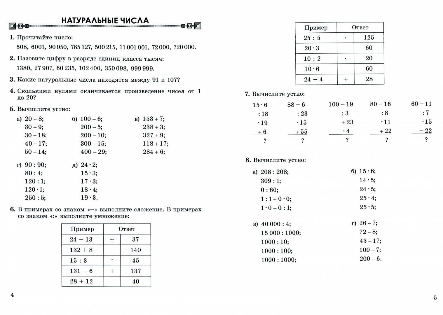 Таблица устного счета 5 класс 99 фото