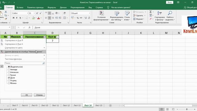 Таблица в excel фильтрация 110 фотографий
