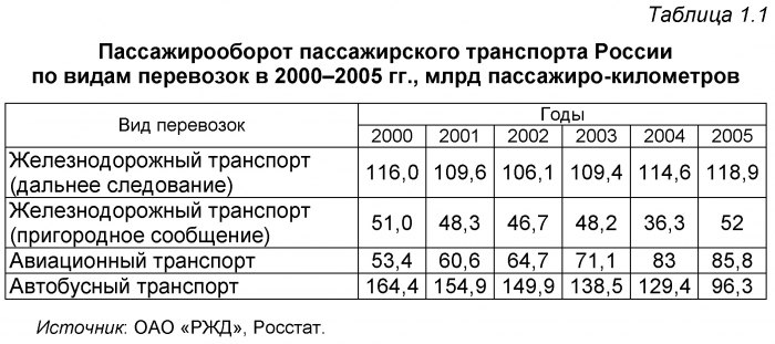 Таблица вид транспорта пассажирооборот