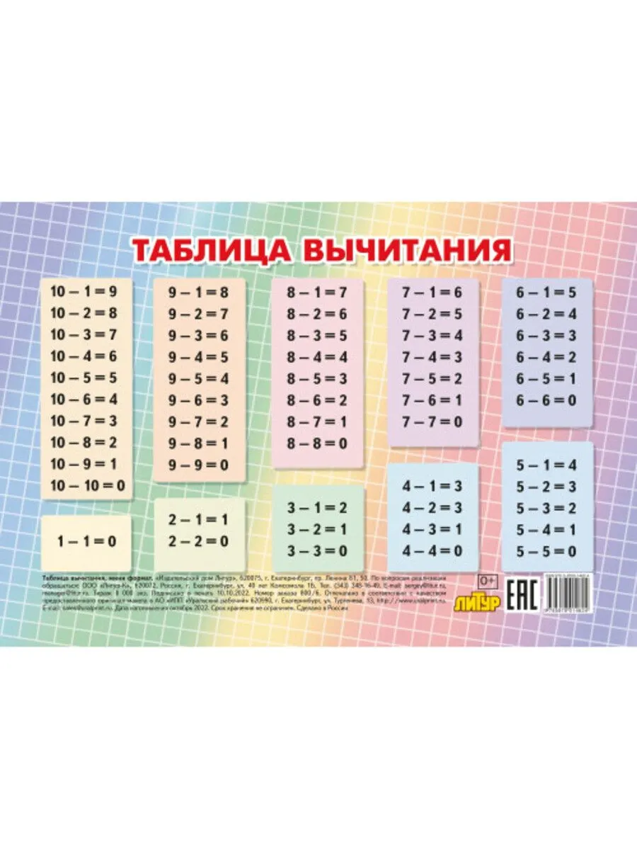 Таблица вычитания до 20 2 класс математика