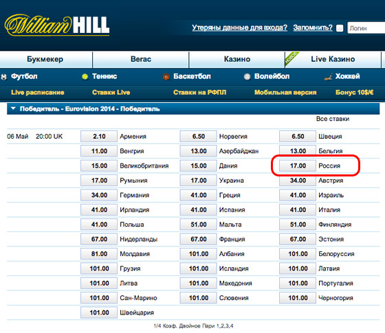 Таблицы букмекерских контор