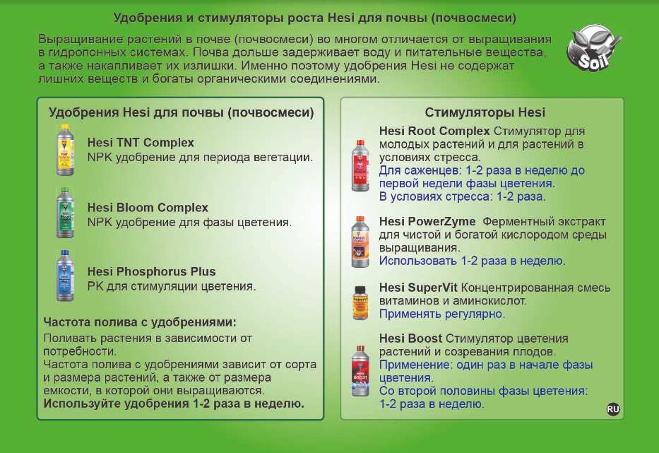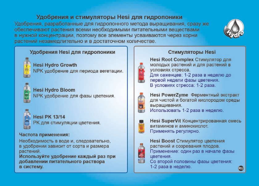 Гроушоп БаклажанГлубокие исследования секретов метаболизма растений привели к тому, что HESI успешно разработала оптимально сбалансированный состав для каждой фазы жизненного цикла растений. Результатом стал ассортимент удобрений для универсального использования на каждой конкретной фазе роста, а не специальное удобрение для каждого вида растений!