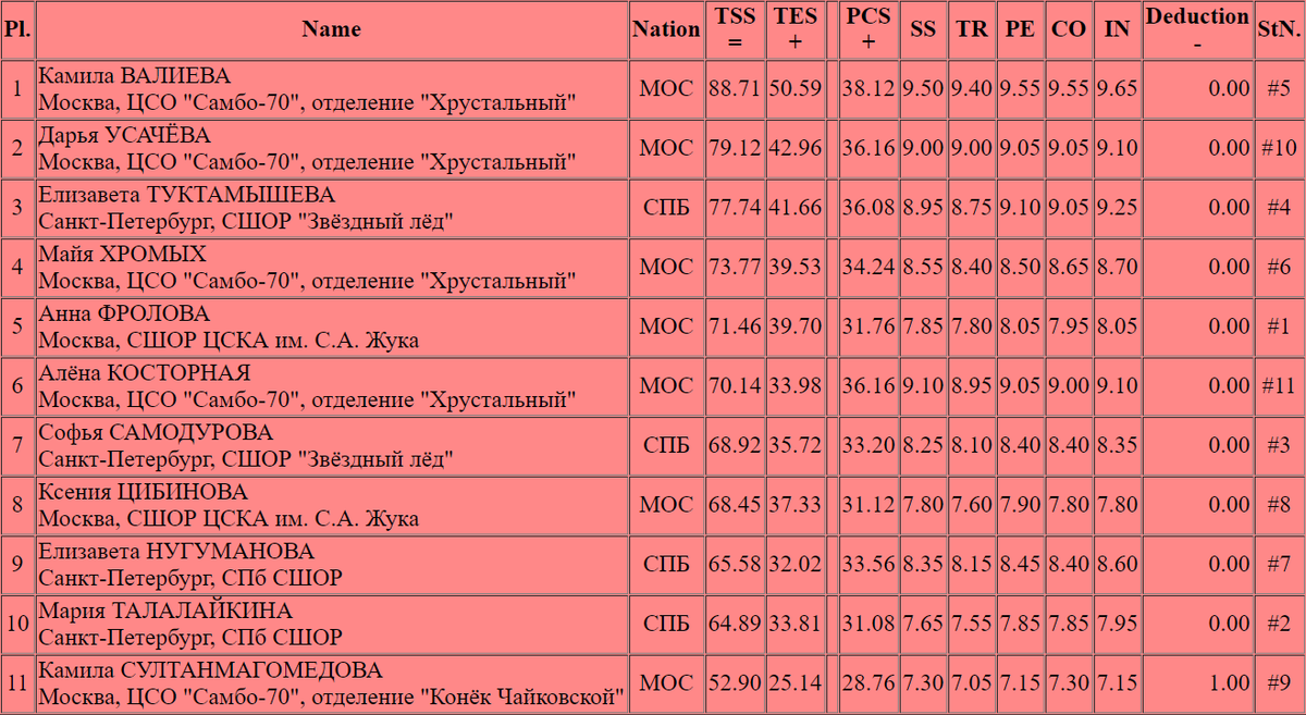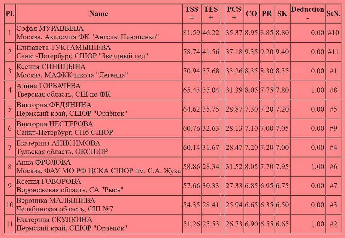 Таблицы результатов фигурное катание 96 фото