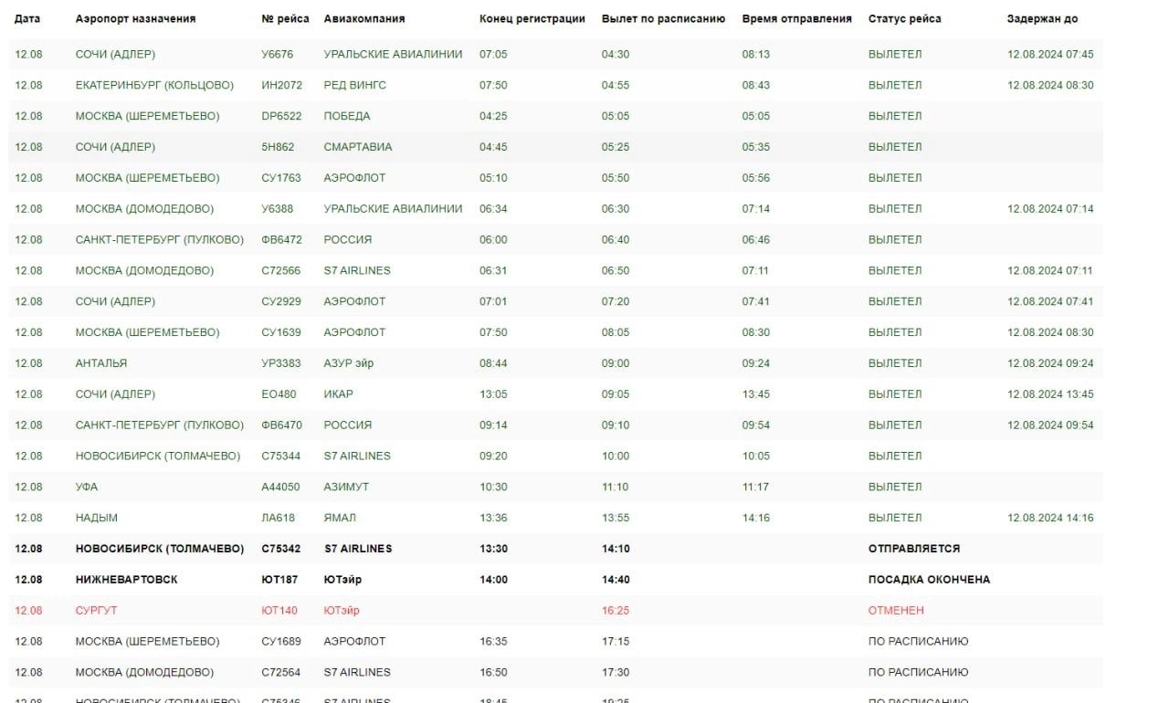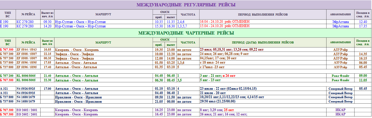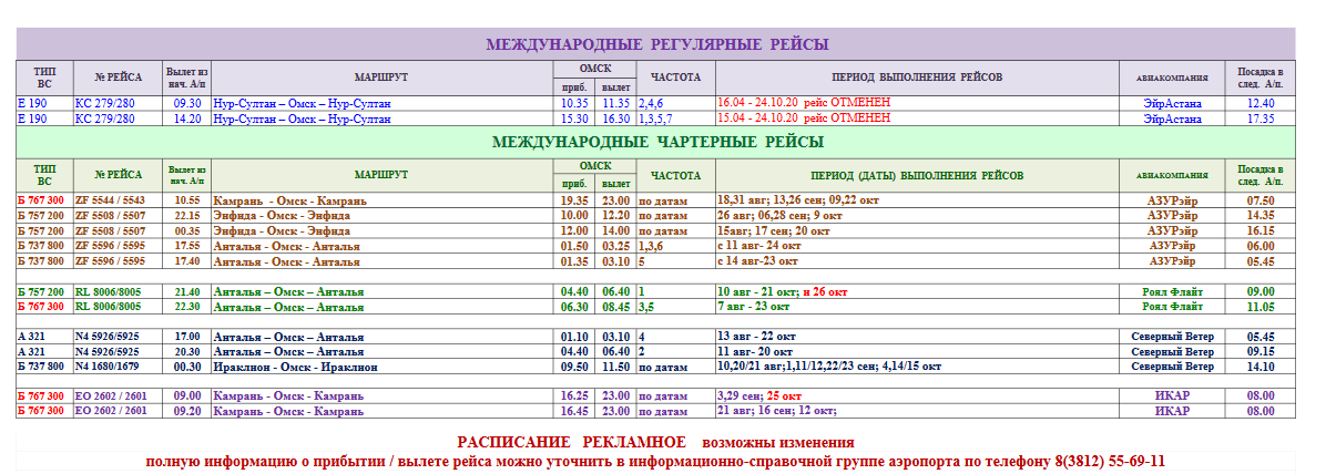 Табло вылета в омском аэропорту