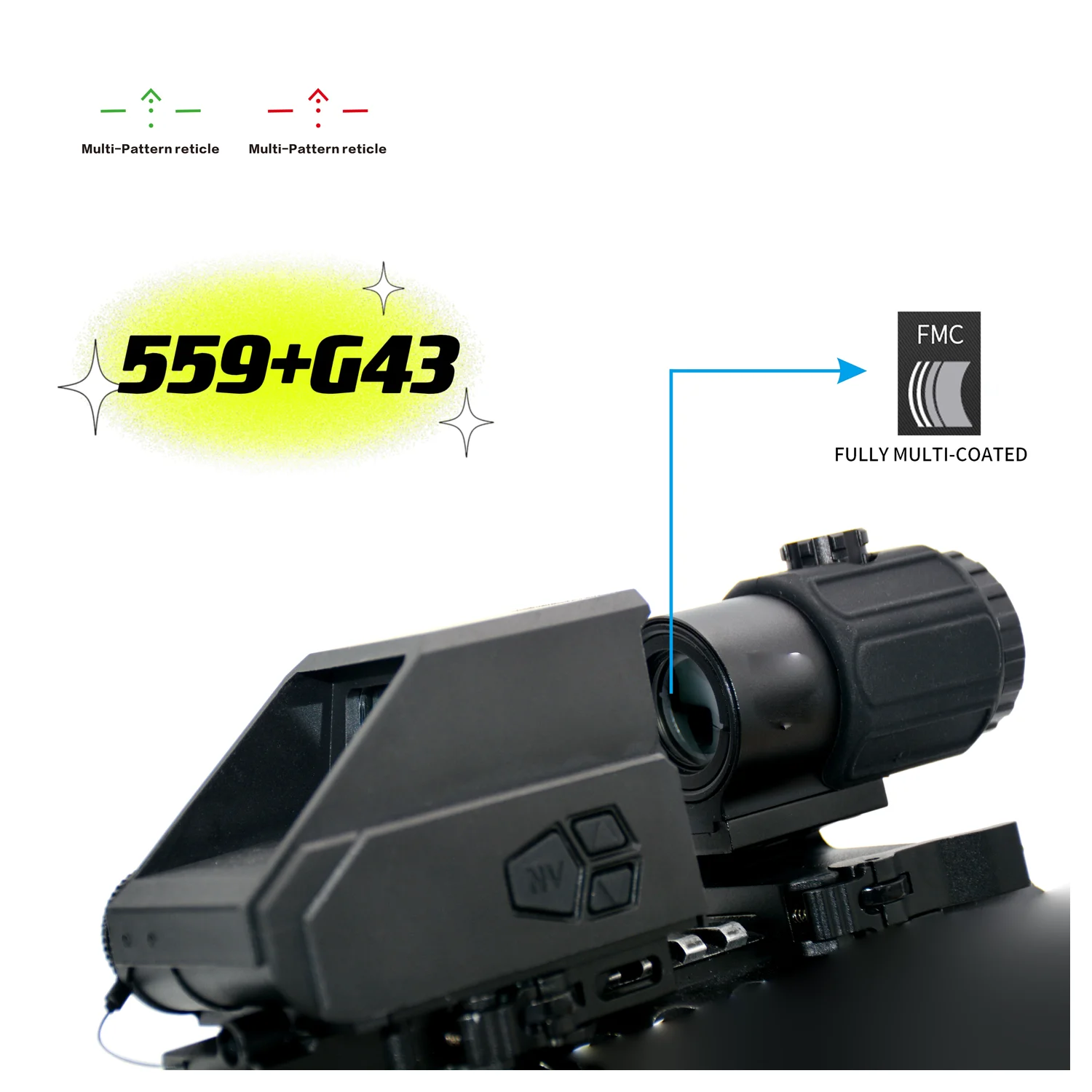 Tactical 559 Green&Red Dot Sight Multi-Pattern Reticle Automatic Brightness Control with Magnifier 3X G43 For Airsoft - Купить с бесплатной доставкой