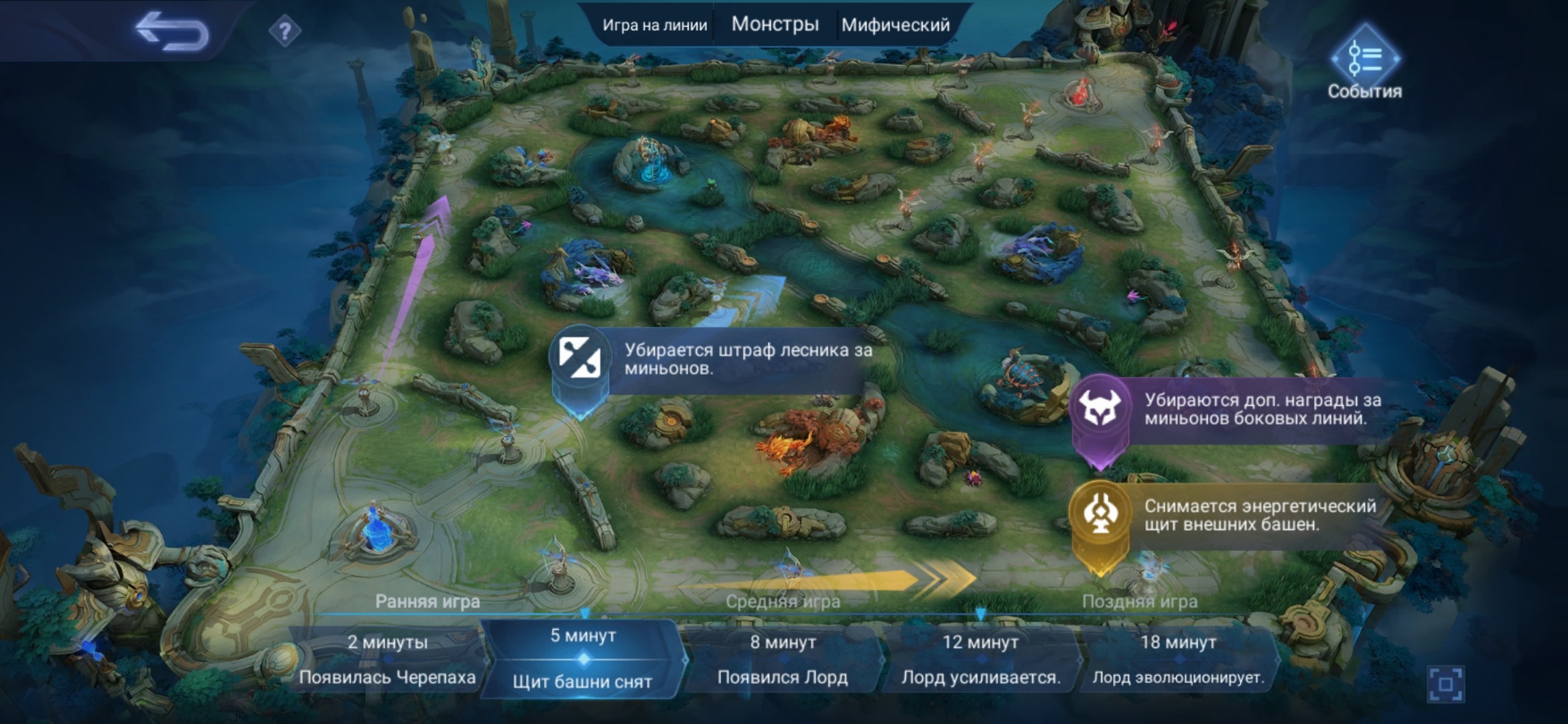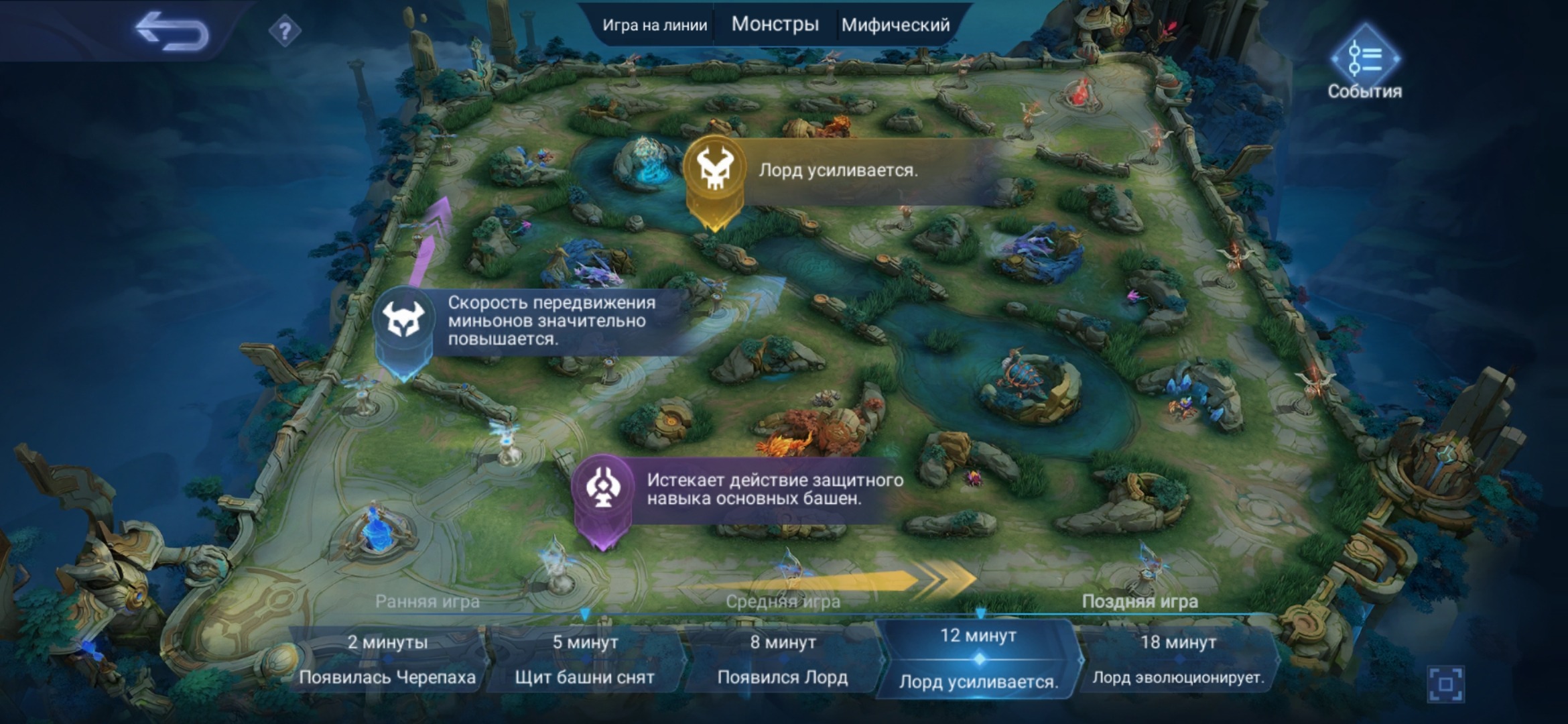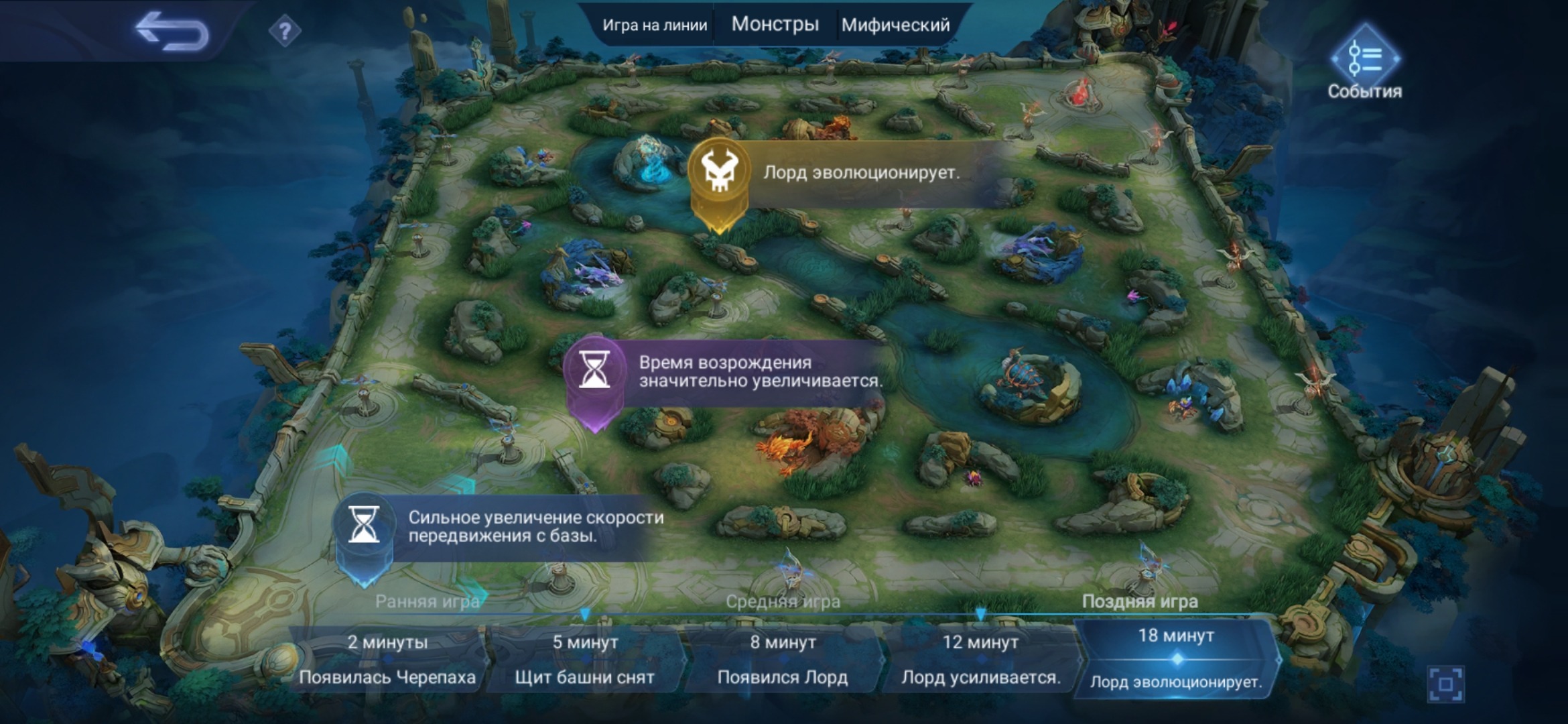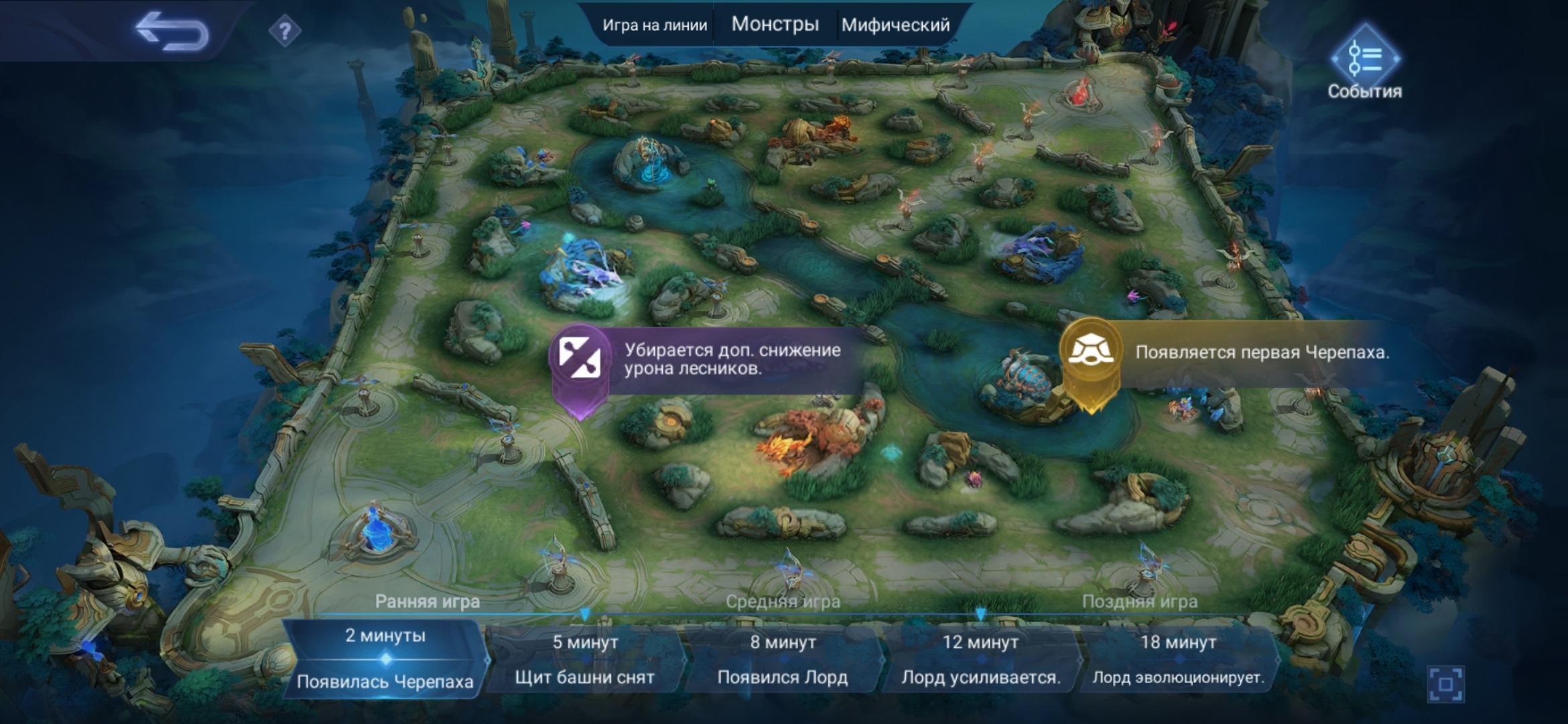 🤔Если знать когда появляются лесные монстры, лорд, черепаха, что меняется, например, на 8 минуте, то можно построить свою тактику так, чтобы использовать это в свою пользу.