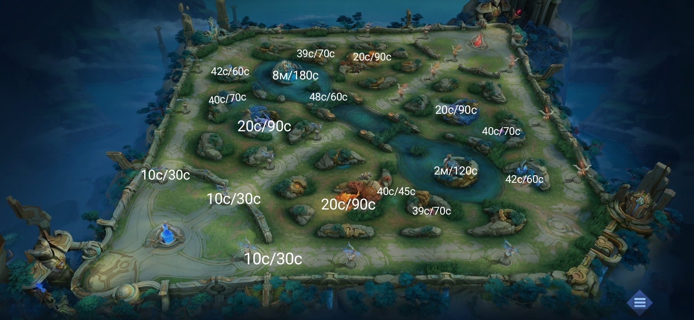 🔸48с - появление речного монстра (вверху появляется ближе к вам, внизу - ближе к врагам)