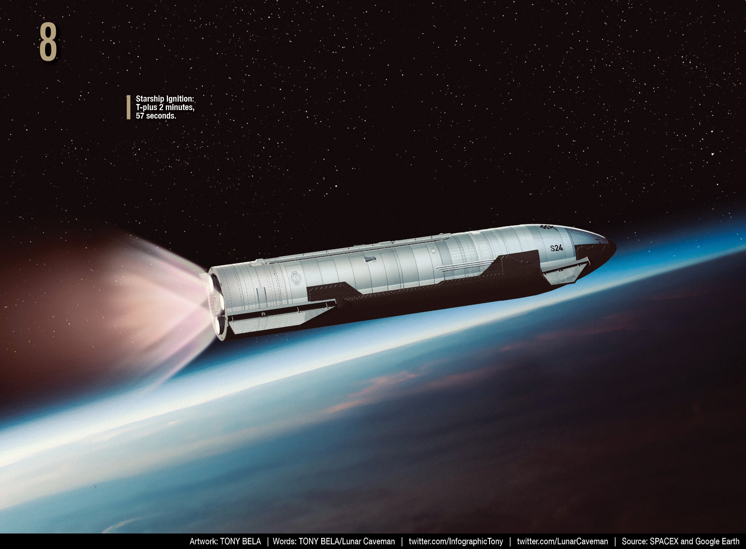 T-00:00:08 - Начинается последовательность запуска двигателей Raptor