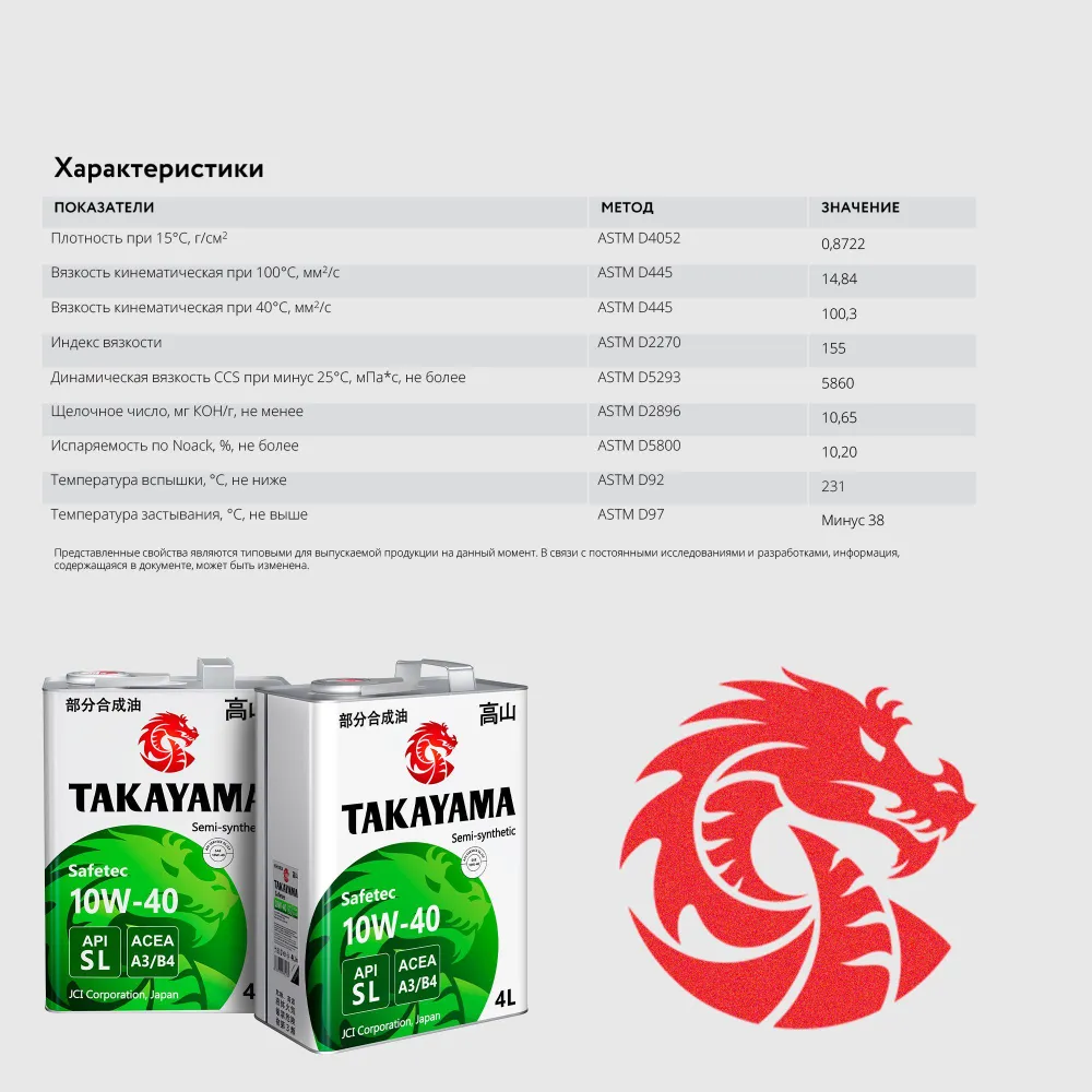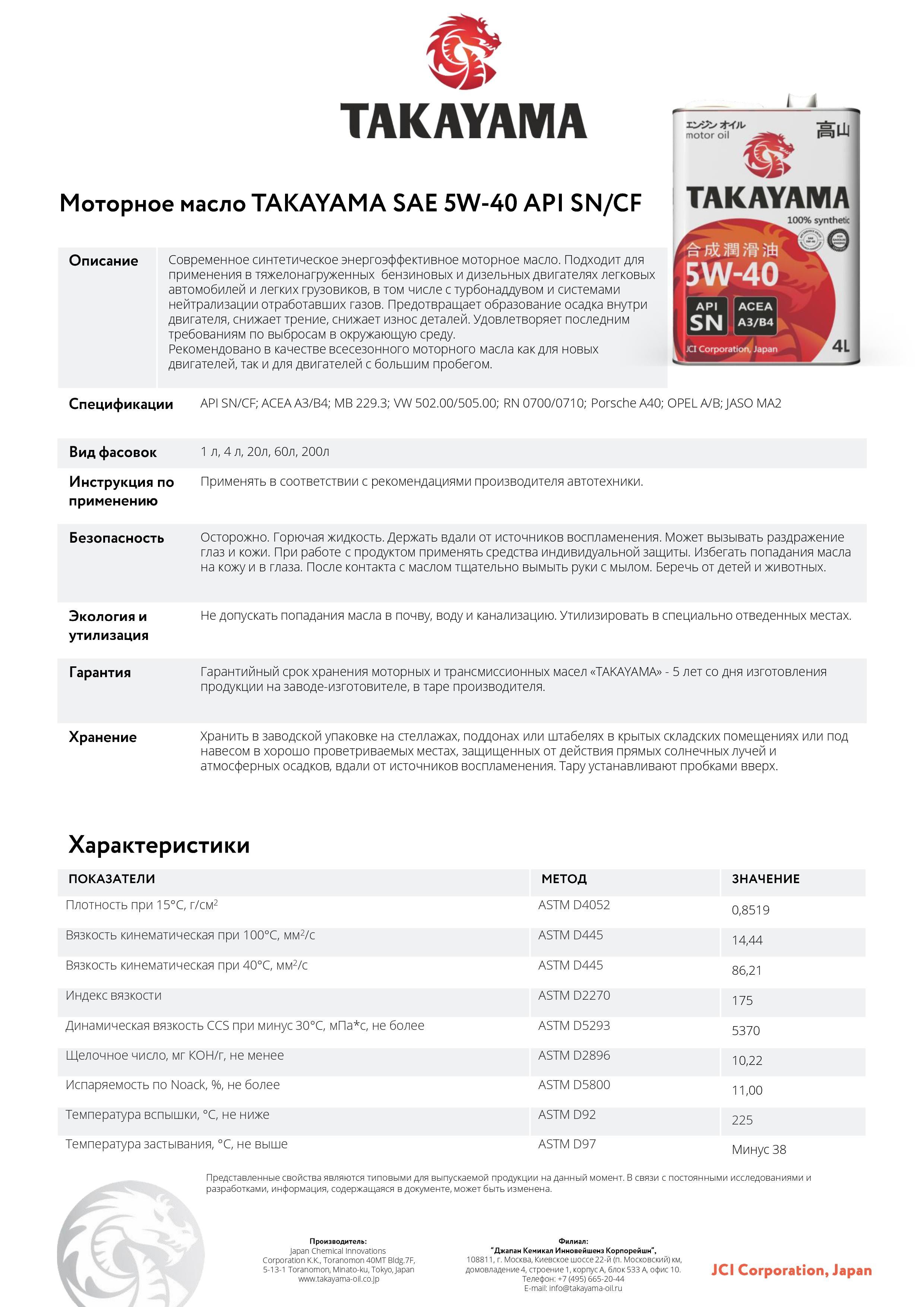 Takayama характеристики