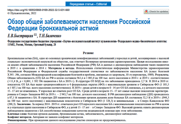 1. Найти последние доступные данные по общей заболеваемости взрослого населения (от 18 лет) России бронхиальной астмой