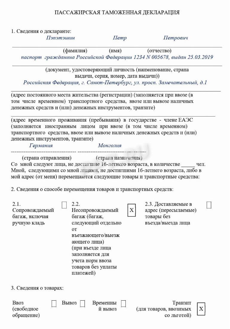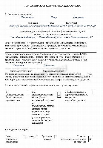 Таможенное декларирование пример