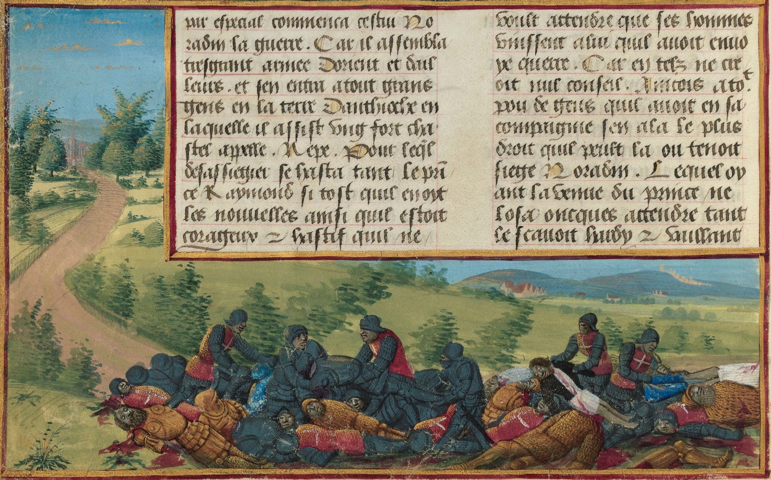 Очень быстро тамплиеры принялись проводить систематическую информационную политику — посредством переписки — в Западной Европе. Во время Второго крестового похода князь Антиохийский Раймунд был убит; Обессиленный и измученный, он пал с мечом в руке, сражаясь с полководцем Нур-ад-Дина Асад ад-Дином Ширкухом ибн Шади.