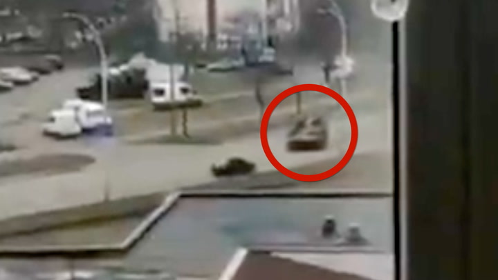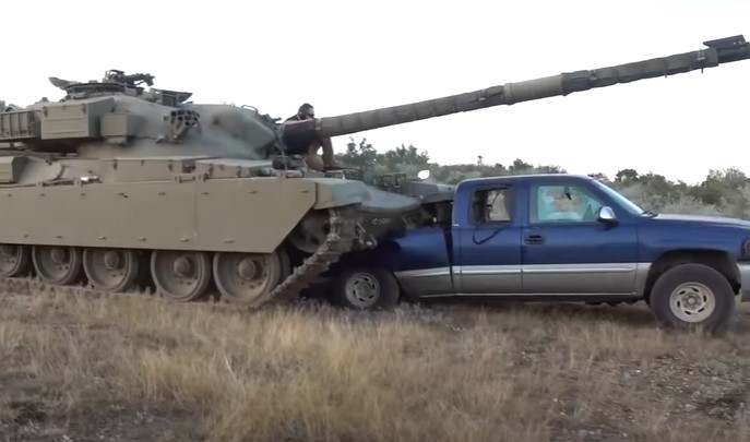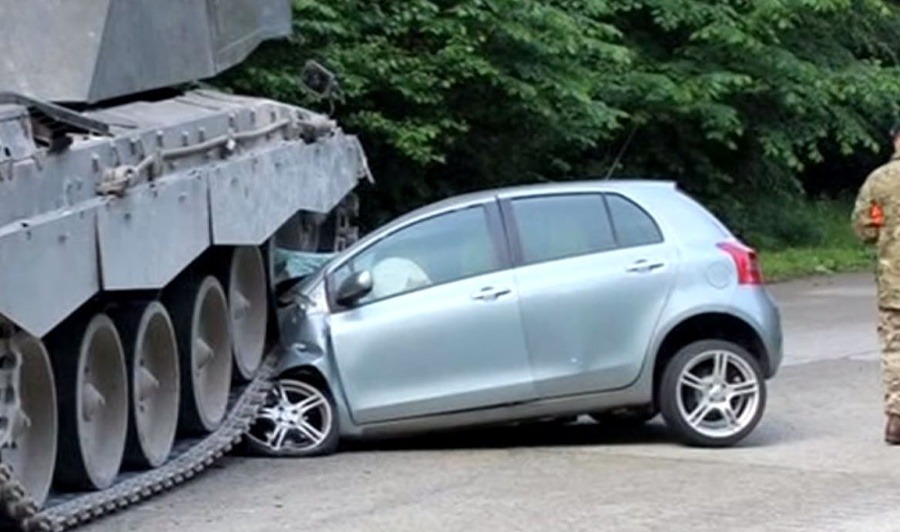 Танк давит машину