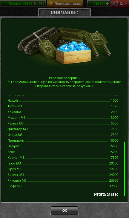 Танки звания и кристаллы