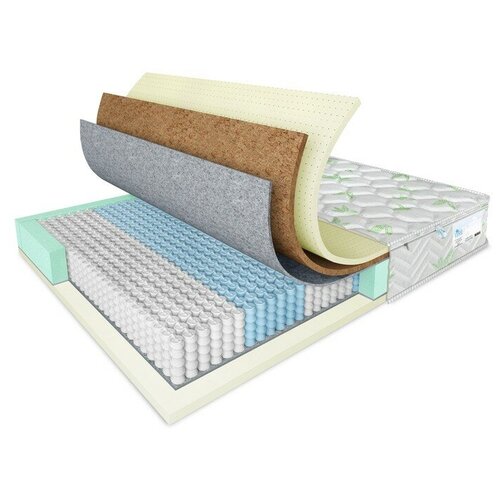 Produit durable avec des matériaux respirants et respirants. Charges : mousse polyuréthane, fibre de coco, latex naturel. Bloc à ressort Multipack.