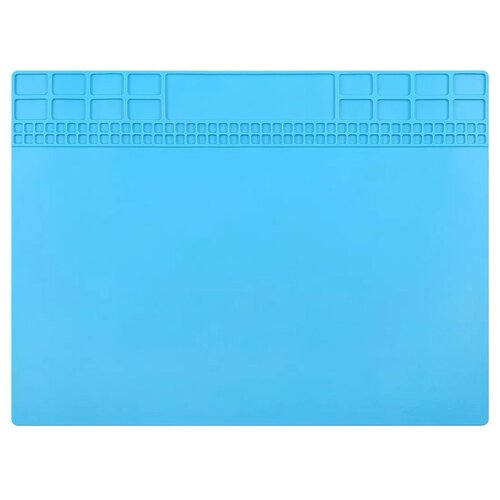 Tapis antistatique résistant à la chaleur pour travaux de réparation avec bande magnétique. Le tapis est en silicone résistant à la chaleur et peut supporter des températures allant jusqu'à 500 °C. Pour faciliter son utilisation, le tapis est équipé de compartiments supplémentaires Captage de chaleur, antidérapant, productivité accrue. Plusieurs trous pour installer des vis, des copeaux et de petites pièces.