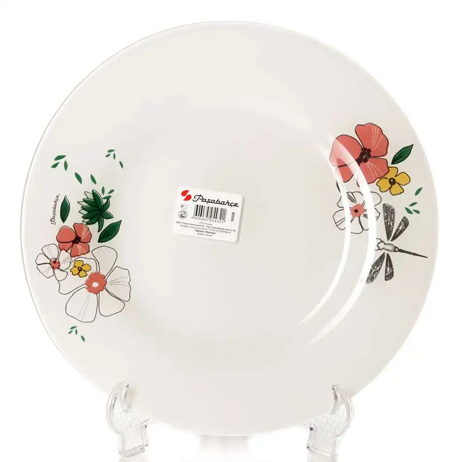 Тарелка Pasabahce изготовлена из упрочненного закаленного натрий-кальций- силикатного стекла с повышенной термостойкостью .