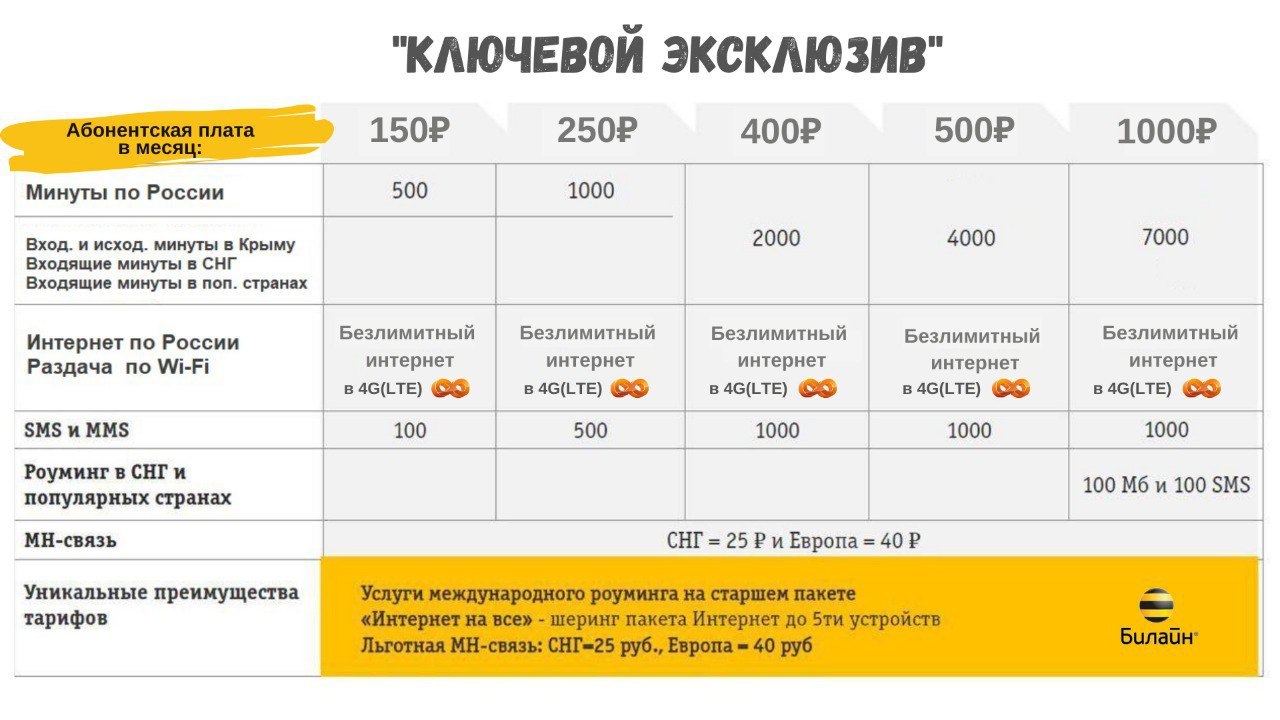 Тариф ключевой билайн
