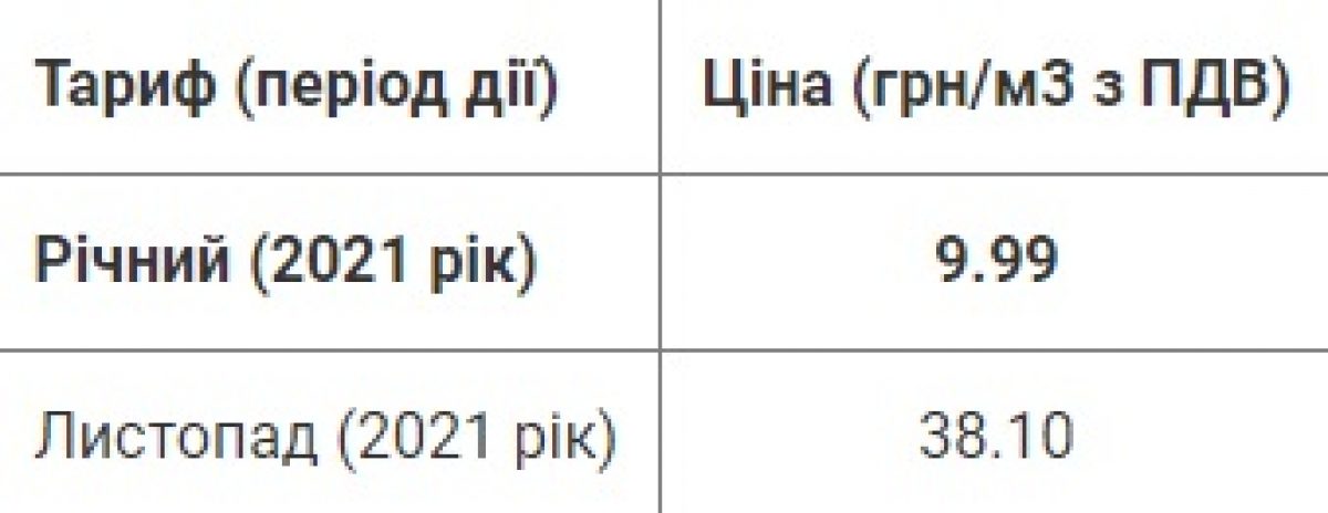 Тарифы декабрь газ