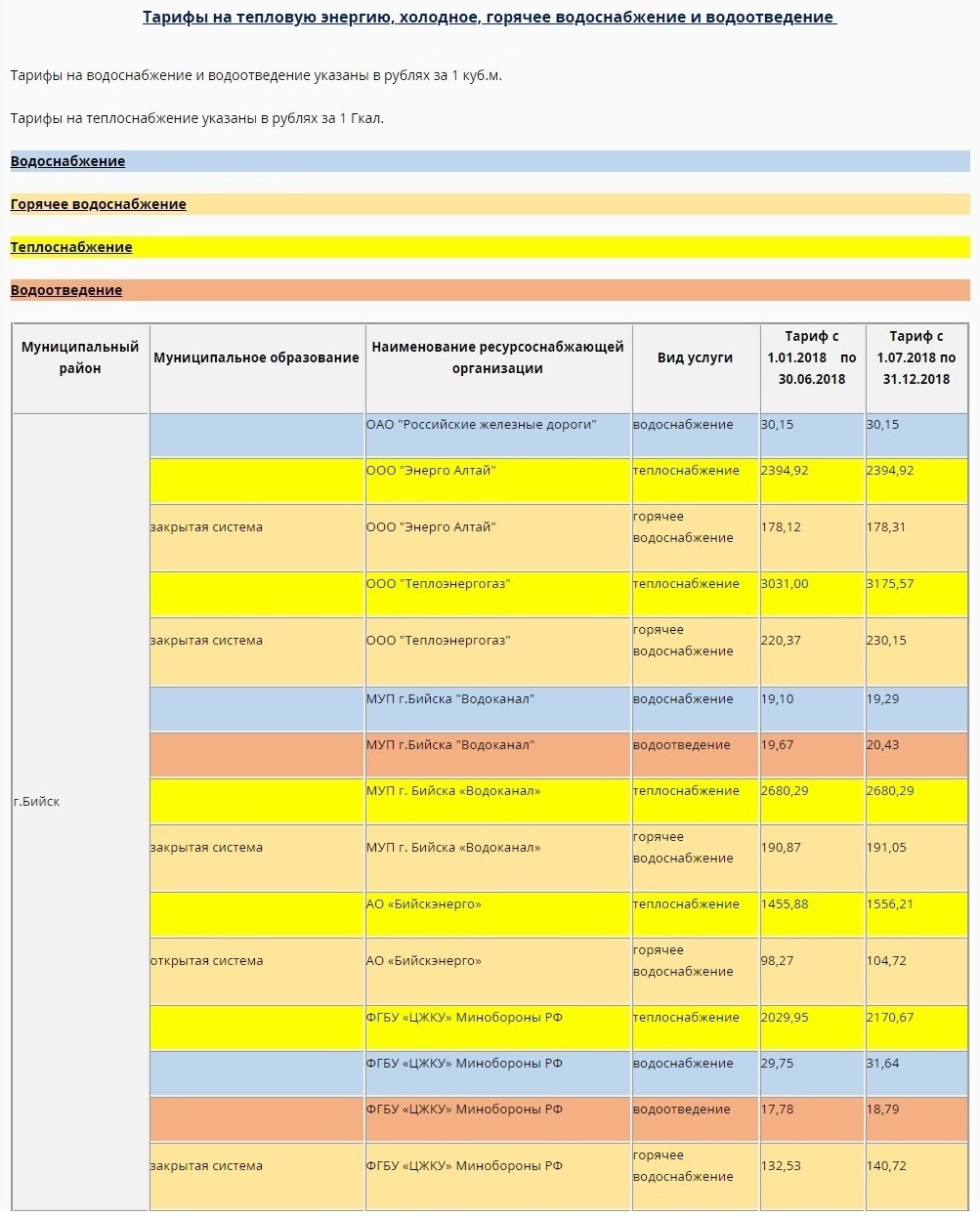 Тарифы горячая вода бийск