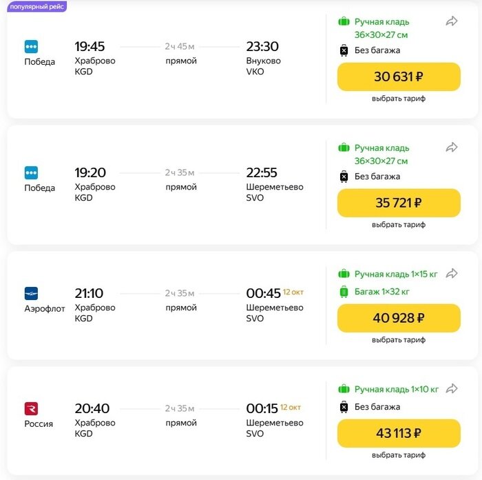 Тарифы самолета победа
