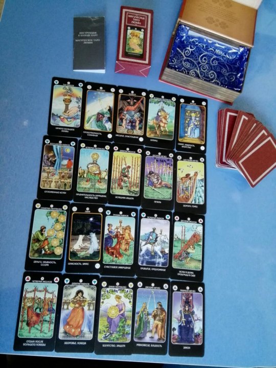 Колода гадальных Таро "Магическое таро любви" из 78 карт с инструкцией-описанием каждой карты . Карты частично напоминают колоду "Эра Водолея" . Колода удобна, если вы собираетесь бр