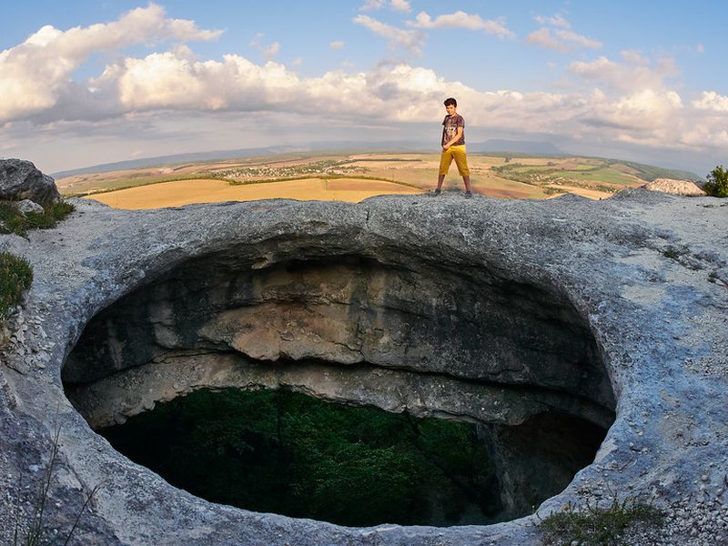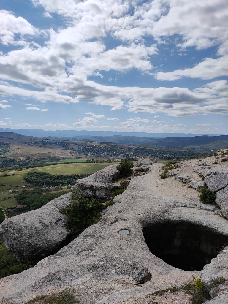 Около Симферополя расположена гора Таш-Джарган с каменным колодцем Тешкли-Коба . С горы открывается живописный вид на Партизанскую долину и высочайшие вершины Крыма .