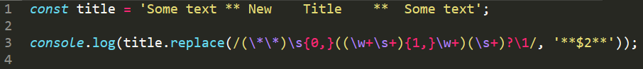 Нужно написать функцию, ктр с помощью регулярного выражения удаляло бы лишние пробелы внутри заголовка между символами **. В тексте может быть только один заголовок вида ** Some Title **.