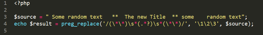 " Some random text ** The New Title ** some random text ".
