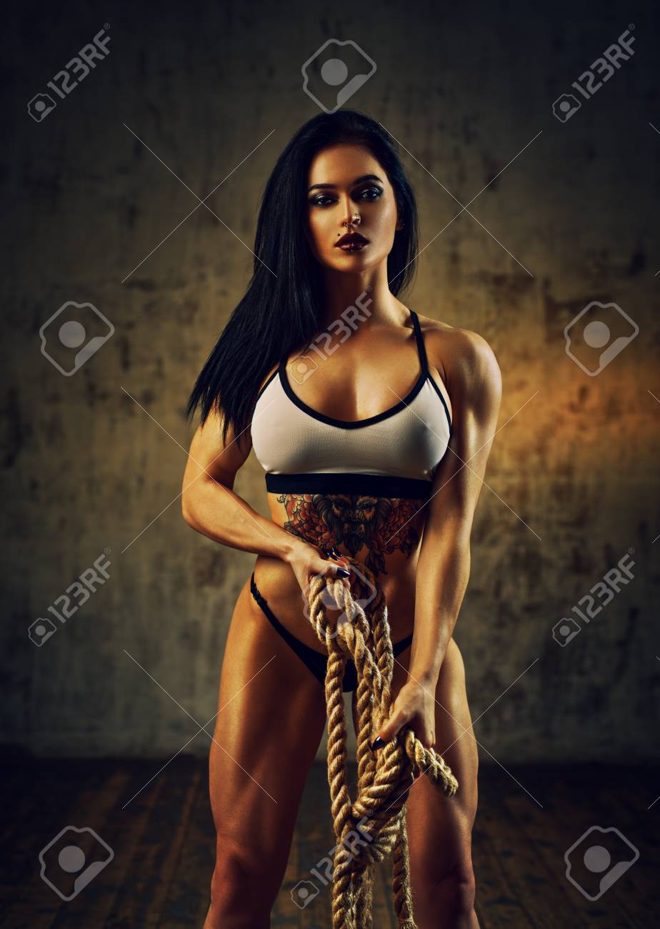 Muskularna kobieta masturbuje się