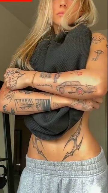 Tattooed girl toying