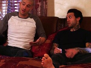 Tattooed punk babe spitroasted in threesome