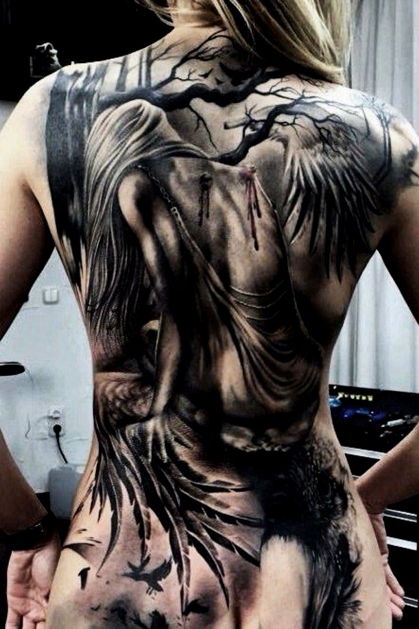 Тату ангел на спине девушки 171 фотографий