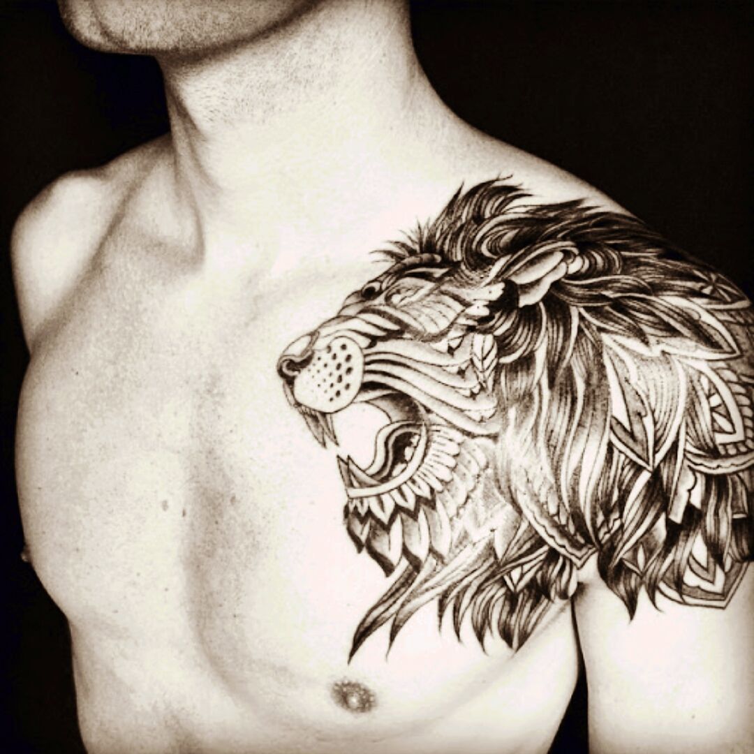 Тату лев на шеи 145 фотографий