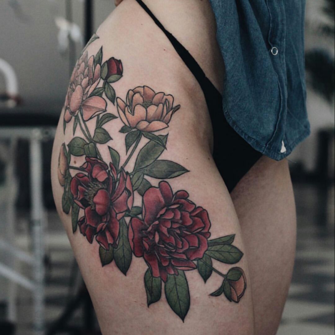 Тату на бедре цветные 147 фото