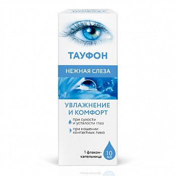 Раствор офтальмологический Тауфон Нежная слеза Тауфон Нежная слеза Тауфон Нежная слеза - комфортное увлажнение глаз увлажняет при сухости и усталости глаз восстанавливает защитные свойства слезной пленки защищает глаза от вредного воздействия внешних факторов можно закапывать, не снимая контактные линзы Где купить