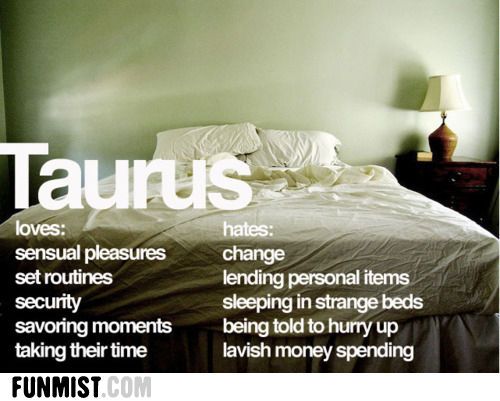 Both the Taurus woman and Taurus man in love are romantic, and they greatly appreciate that quality in their mate . In bed, Taurus man Taurus woman enjoy making love slowly, sensually, and then build it to a powerfully emotional climax . They don't need overwhelming passion or excitement; they just need each other .