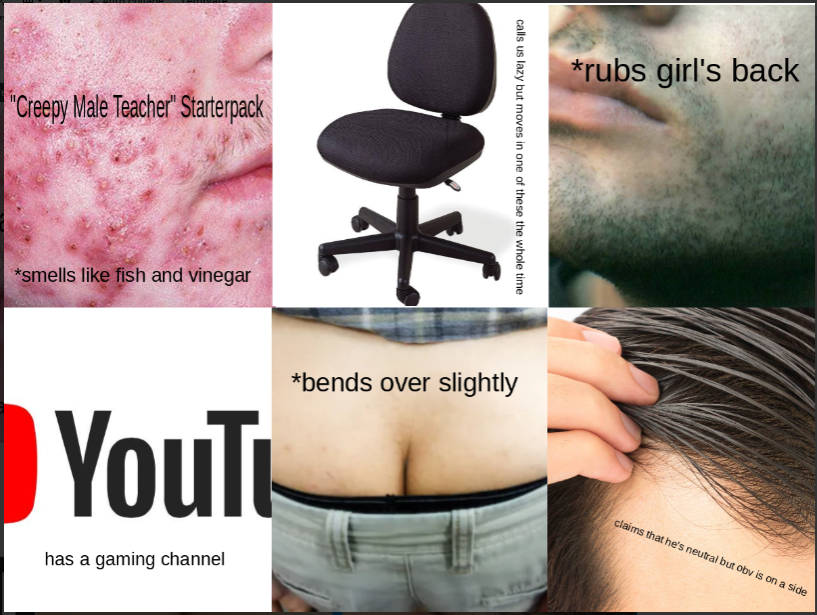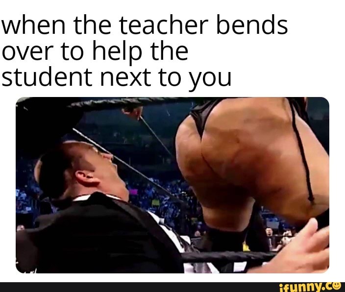 Teacher bends over
