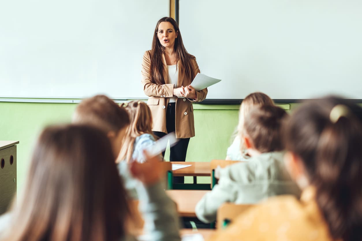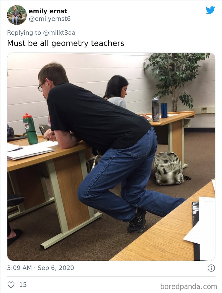 Teacher bends over