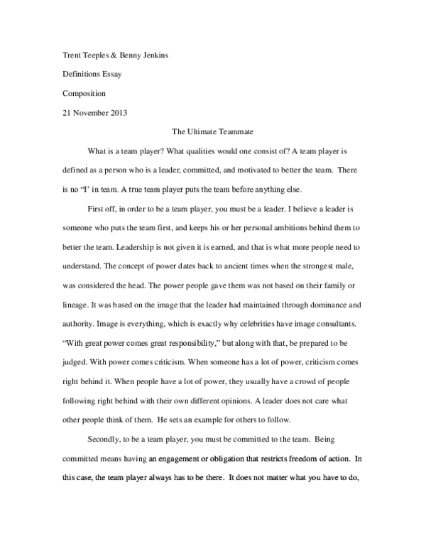 Team Player Essay example - 2122 Words | Bartleby