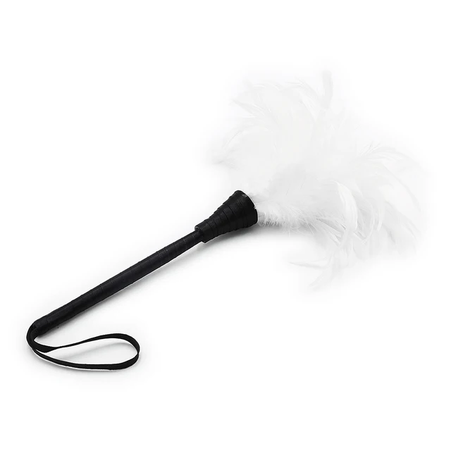 The feather . I love feathers, and it works great because I'm so feather ticklish, especially on my feet and hips . I love them all, long stiff eagle feathers, the soft colored plumes of ostrich dusters, the gentle and teasing tips of the peacock feathers .